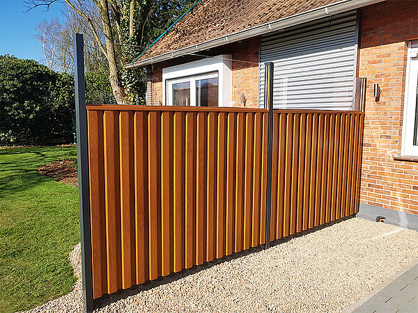 Auch in Einfahrten dienen unsere Schutzwände als optimale Grundstücksbegrenzung und schaffen eine optische Trennung zu angrenzenden Grundstücken. Sie sorgen so für mehr Privatsphäre und dämpfen störenden Lärm von angrenzenden Parkplätzen, Einfahrten oder Straßen.