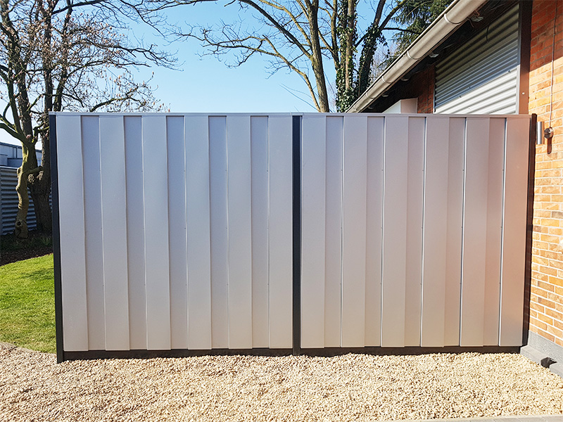 Auch in Einfahrten dienen unsere Schutzwände als optimale Grundstücksbegrenzung und schaffen eine optische Trennung zu angrenzenden Grundstücken. Sie sorgen so für mehr Privatsphäre und dämpfen störenden Lärm von angrenzenden Parkplätzen, Einfahrten oder Straßen.